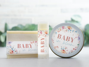 For a truly memorable favor, consider the exclusive gift set. It includes all three: a handmade soap, lip balm, and candle tin. All will be coordinated in your chosen scent and theme. Packed in a drawstring bag, these baby in bloom shower sets are a thoughtful appreciation guests will cherish long after the party.